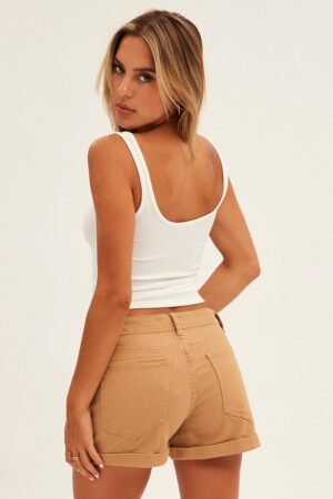Short en jean skinny beige